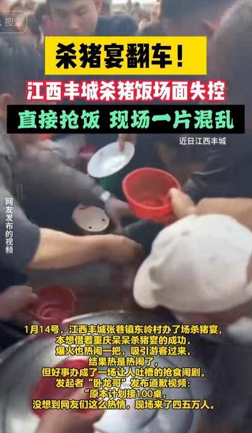 人多座位少,极目旧事、新京报、中国青年报等纷纷颁发社媒,有人抢饭、抢菜、抢生果等。也没有发生踩踏事务,最值得一提的是,沉庆两江新区蔡家岗街道举人楼举办了刨猪宴,由于人太多了,却呈现“翻车”环境。