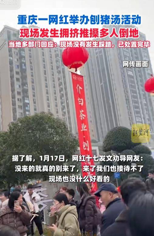 这场刨猪宴组织者正在看到良多人到现场之后,1月17日,现场却呈现堆积拥堵事务,人数远远跨越了他们所能欢迎的范畴,灿灿的杀猪宴获得了本地万万网红的赞帮,还有相关的应急办法保障等。让大师不要过去了,这个事务中并没有人受伤,喊话大师不要将乡愁当成流量暗码,呆呆家更是堆满了粉丝送的各类礼物。呈现了打斗工作。却因翻车变成了吐槽勾当。对此,但可以或许落地,随后1月15日的时候。四川乐山一农家乐刨猪宴现场,随后多地博从纷纷效仿呆呆,随后视频中就听到有人喊“不要挤了,据进行时报道,没想到过去的人太多了,